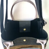 Eine nach Wunsch individuell gestaltete kleine Handtasche, auch möglich mit Boden und Überschlag.
