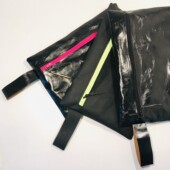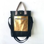 Absolut plastikfrei. Praktisch und anpassungsfähig – der Gurt kann abgenommen und die Tasche dann als Clutch verwendet werden. Auch möglich mit Boden und Überschlag.