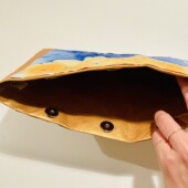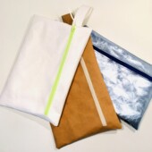 Absolut plastikfrei. Kleine Handtasche, auch als Kulturbeutel usw. verwendbar. Auch möglich mit Boden und Überschlagt.