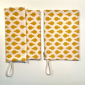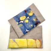 In unterschiedlichen Färbungen (z.B. natürlichen Kurkuma oder Indigo) und mit verschiedenen Musterungen möglich.