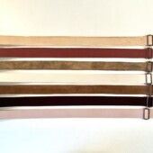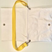 Matt oder metallic in verschiedenen Farben, Baumwollgurt, Reißverschlüsse, drehbare Karabiner, Ösen und Versteller in unterschiedlichen Farbabstufungen möglich.