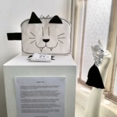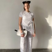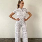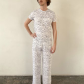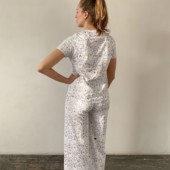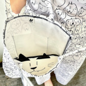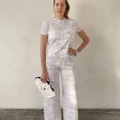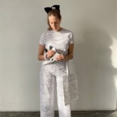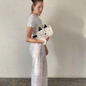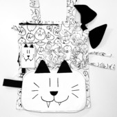 Bei dieser Sonderedition wurde ein spezifisch für das Projekt entworfene Muster mittels Siebdruck auf weißen Bio-Baumwoll-Stoff (Gewebe und Jersey) gedruckt. Die Inspiration der Zeichnung, die dann als Rapport auf den Stoff gedruckt wurde, sind abstrakte Katzen in verschiedensten Lebensformen.