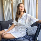 Ein multifunktionales Wickelkleid, auch eine Jacke, adaptiert vom klassischen Kimono.