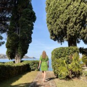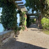 Ein fließend fallendes Kleid mit glockenförmig ausgestelltem Saum.