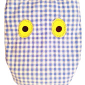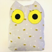Ein Eulenpolster (Außen- und Innenpolster aus Bio-Baumwolle), gefüllt mit Bio-Zirbenspähnen und Bio-Lavendel.