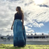 Sehr schicker, individuell konstruierter bodenlanger Taillen-Faltenrock, auf Wunsch mit integrierten Taschen (auch Teil vom passenden Monolook).