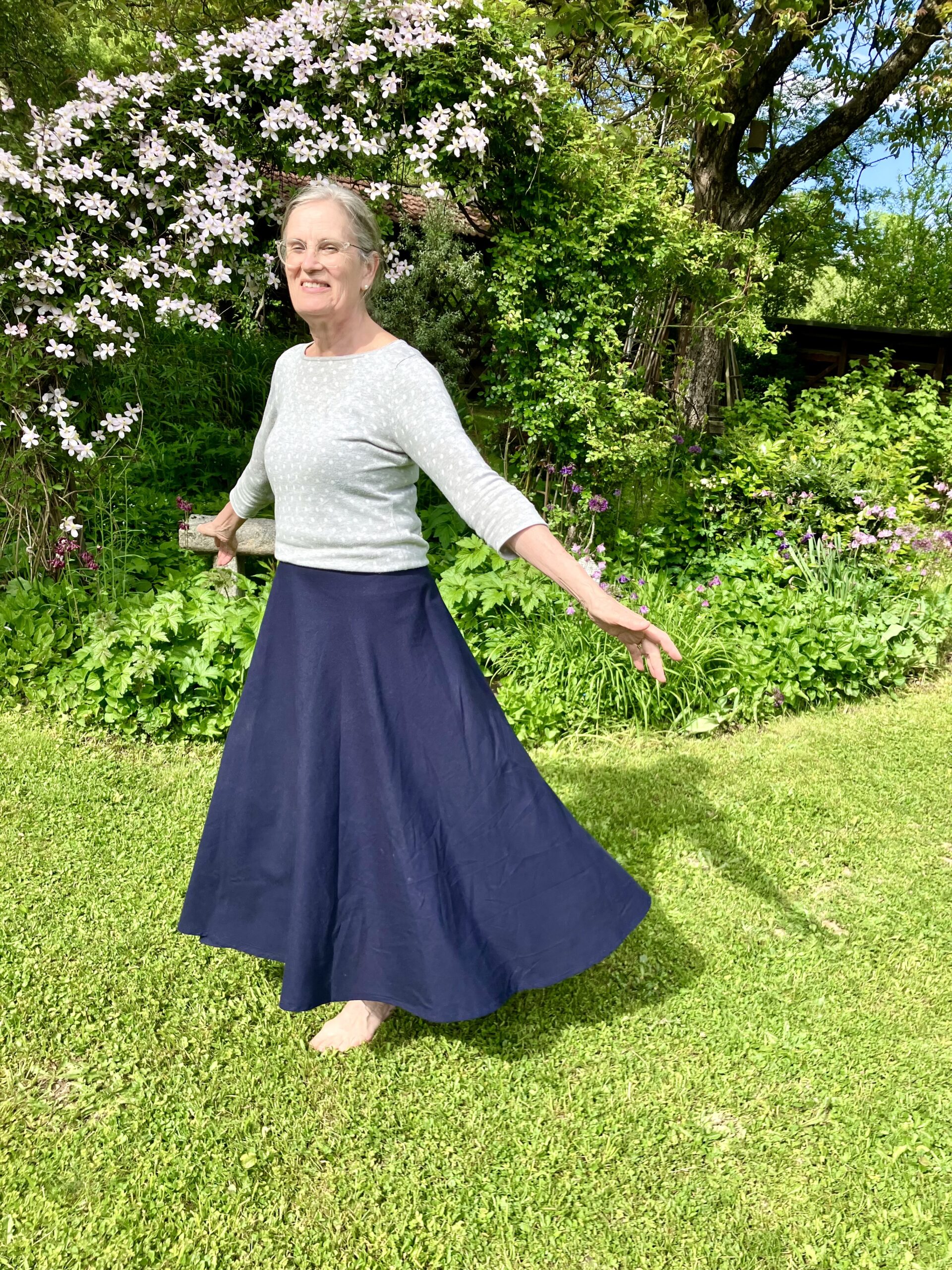 Sehr schicker, individuell konstruierter bodenlanger Taillen-Faltenrock, auf Wunsch mit integrierten Taschen (auch Teil vom passenden Monolook).