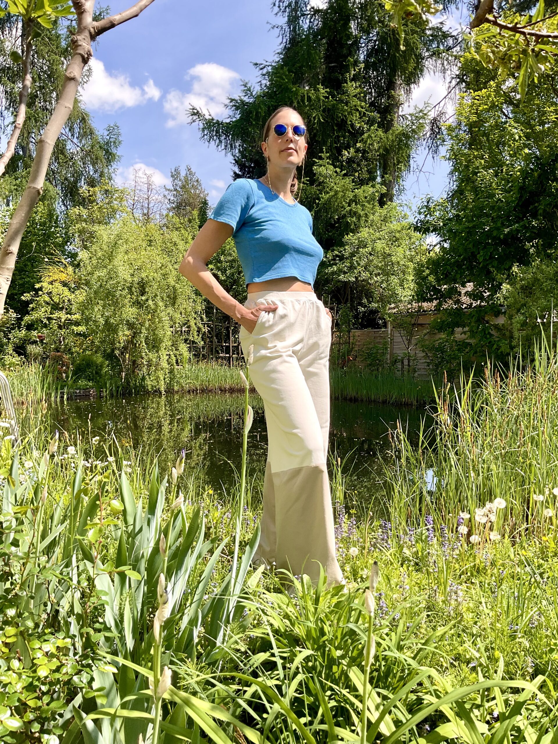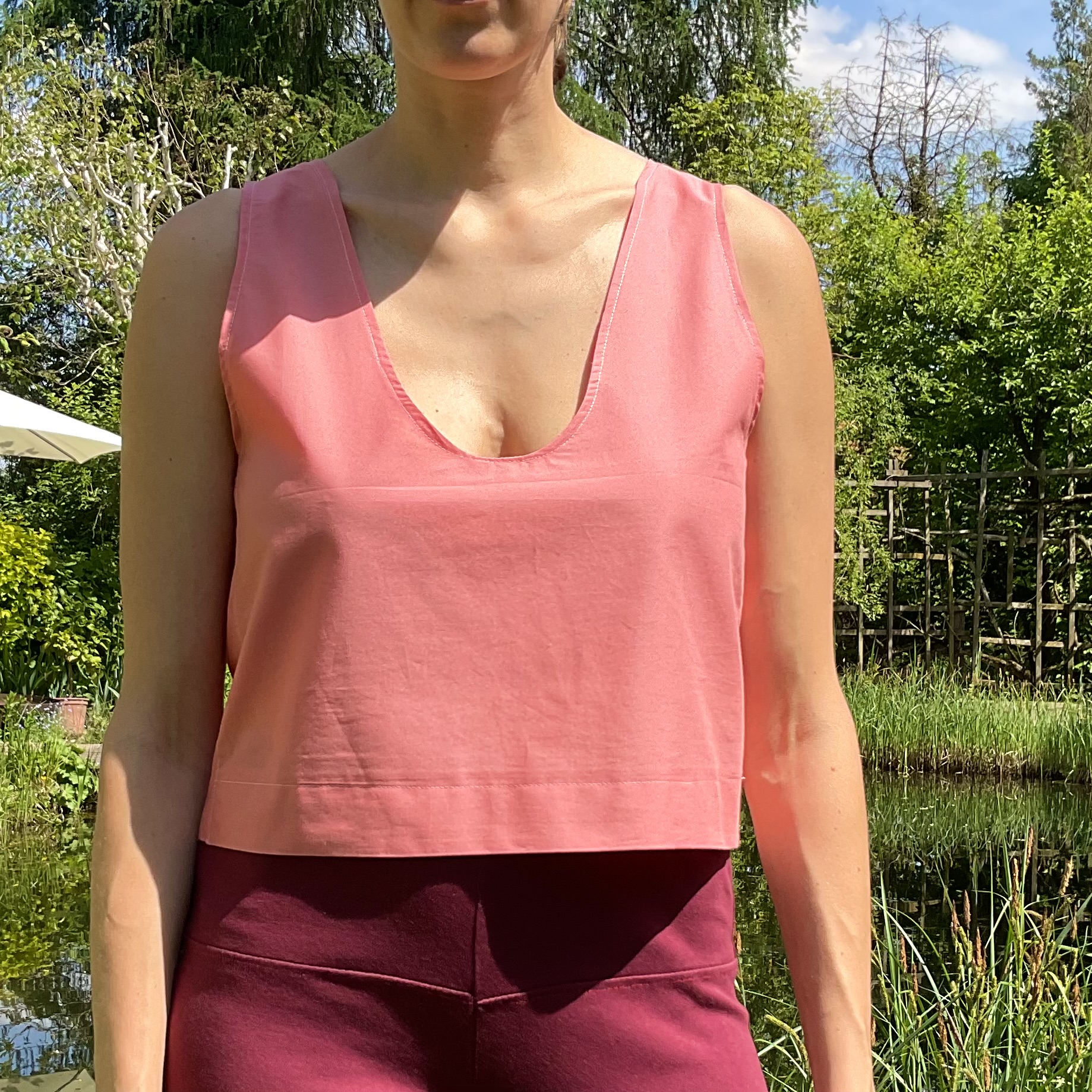 Ein gemütliches Crop Top ohne Ärmel (auch Teil vom passenden Monolook).